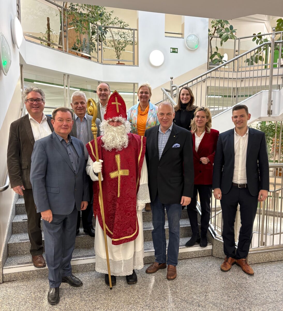 Weil er am Barbara-Tag (4. Dezember) auch noch nichts zu tun hatte, habe ich den Nikolaus gebeten, mich zum gestrigen Bürgermeister-Jour-Fixe mit dem Herrn Bezirkshauptmann zu begleiten (siehe Bild oben).